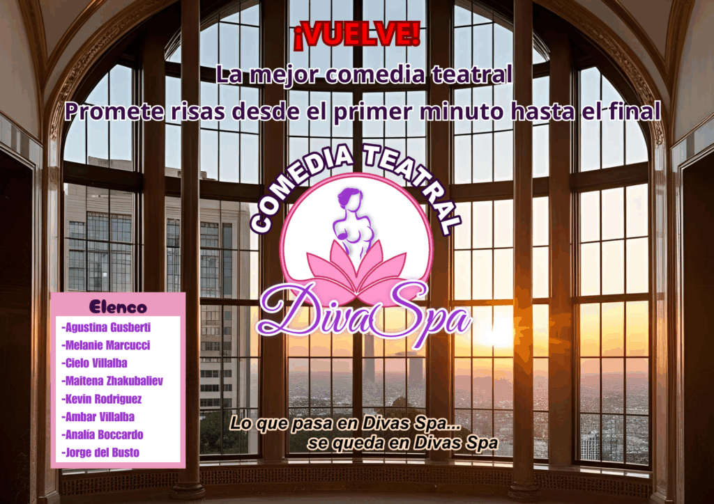 «Divas Spa» es una obra de teatro que promete risas continuas desde el primer minuto hasta el final. Es un espectáculo de humor sano, ideal para disfrutar en familia y compartir momentos inolvidables.